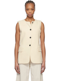 Stretch polyester-blend twill vest. - Round neck - Button closure - Welt pocket and flap pockets - Darts at front - Full viscose-blend satin lining - Logo-engraved black hardware Supplier color: Ivory