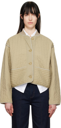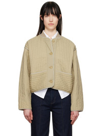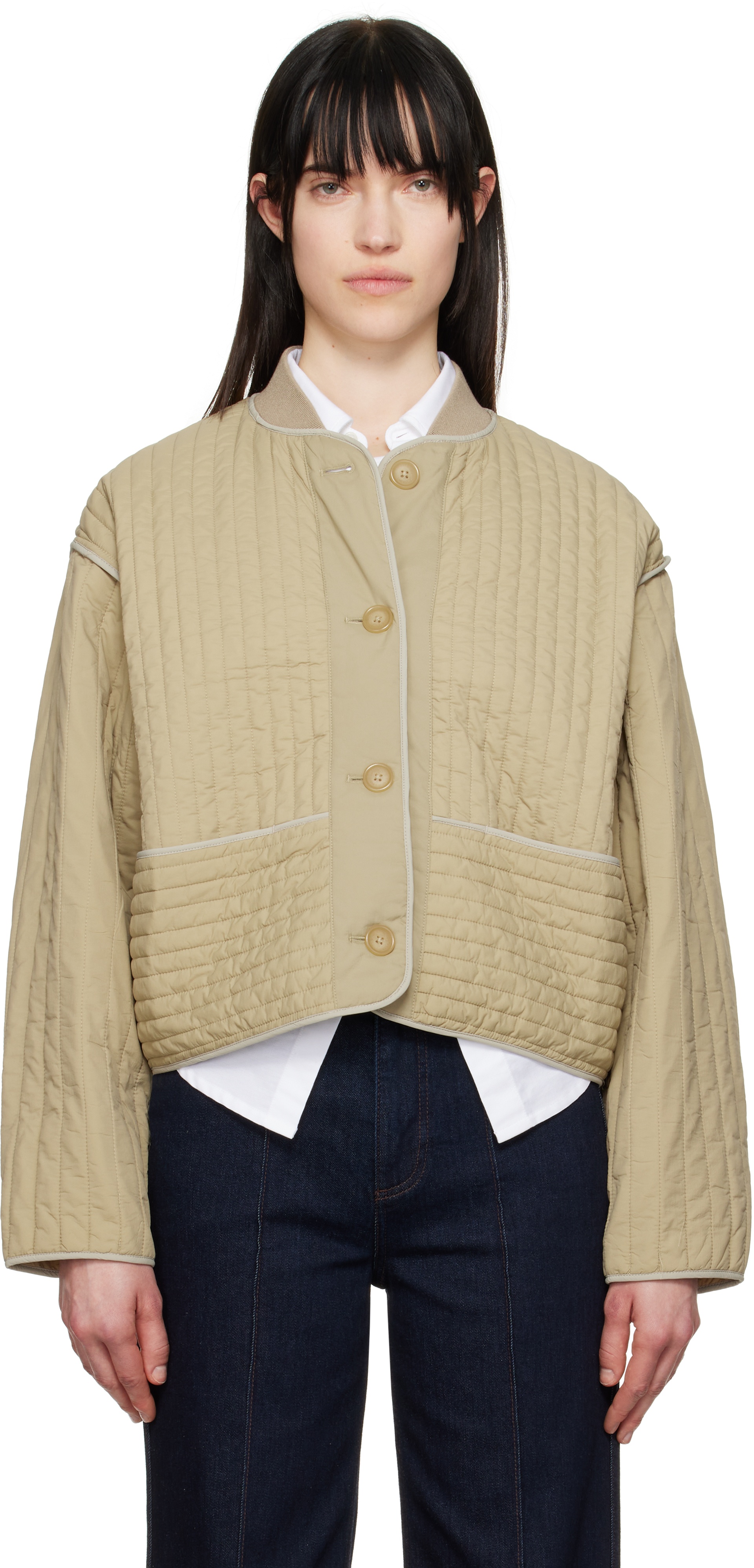 Padded and quilted nylon taffeta jacket. Piping throughout. - Rib-knit stand collar - Button closure - Patch pockets - Inverted seam at sleeves and back - Fully lined Supplier color: Tan