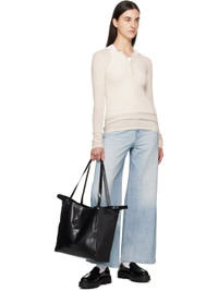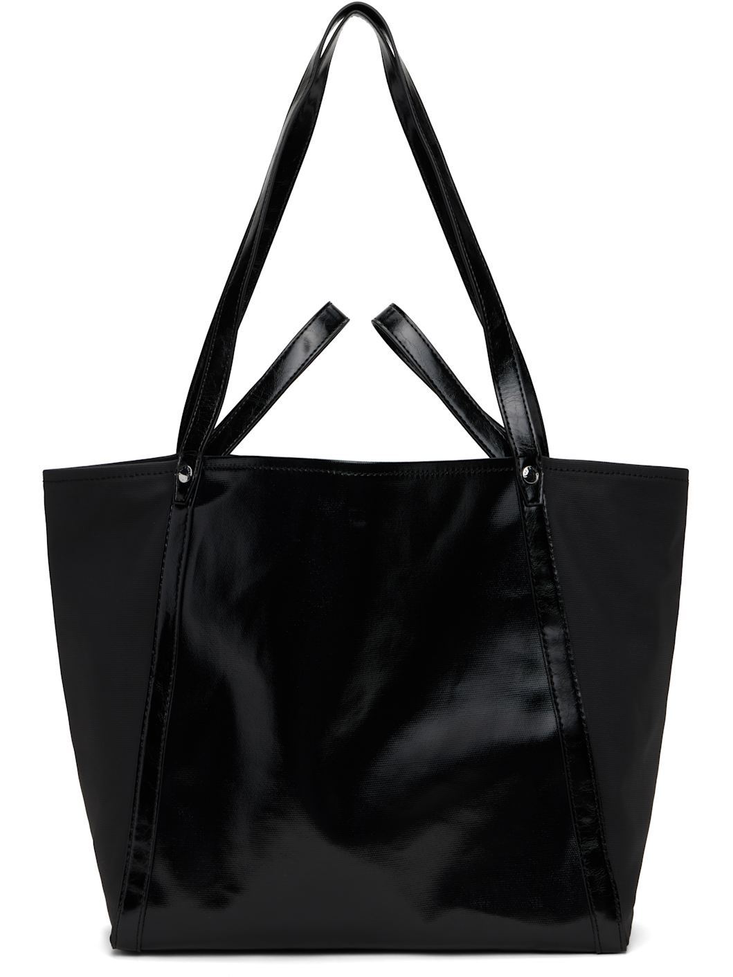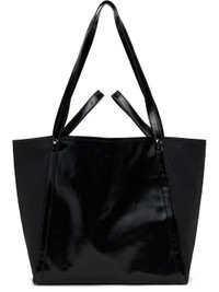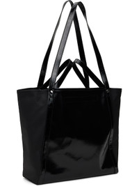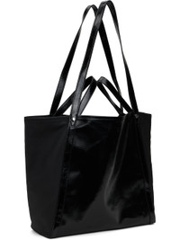 Coated cotton canvas tote in black. · Faux-leather trim throughout · Fixed shoulder straps · Lanyard-clasp closure · Patch pocket at interior · Unlined · Logo-engraved silver-tone hardware · H13" x W14" x D5" Supplier color: Black