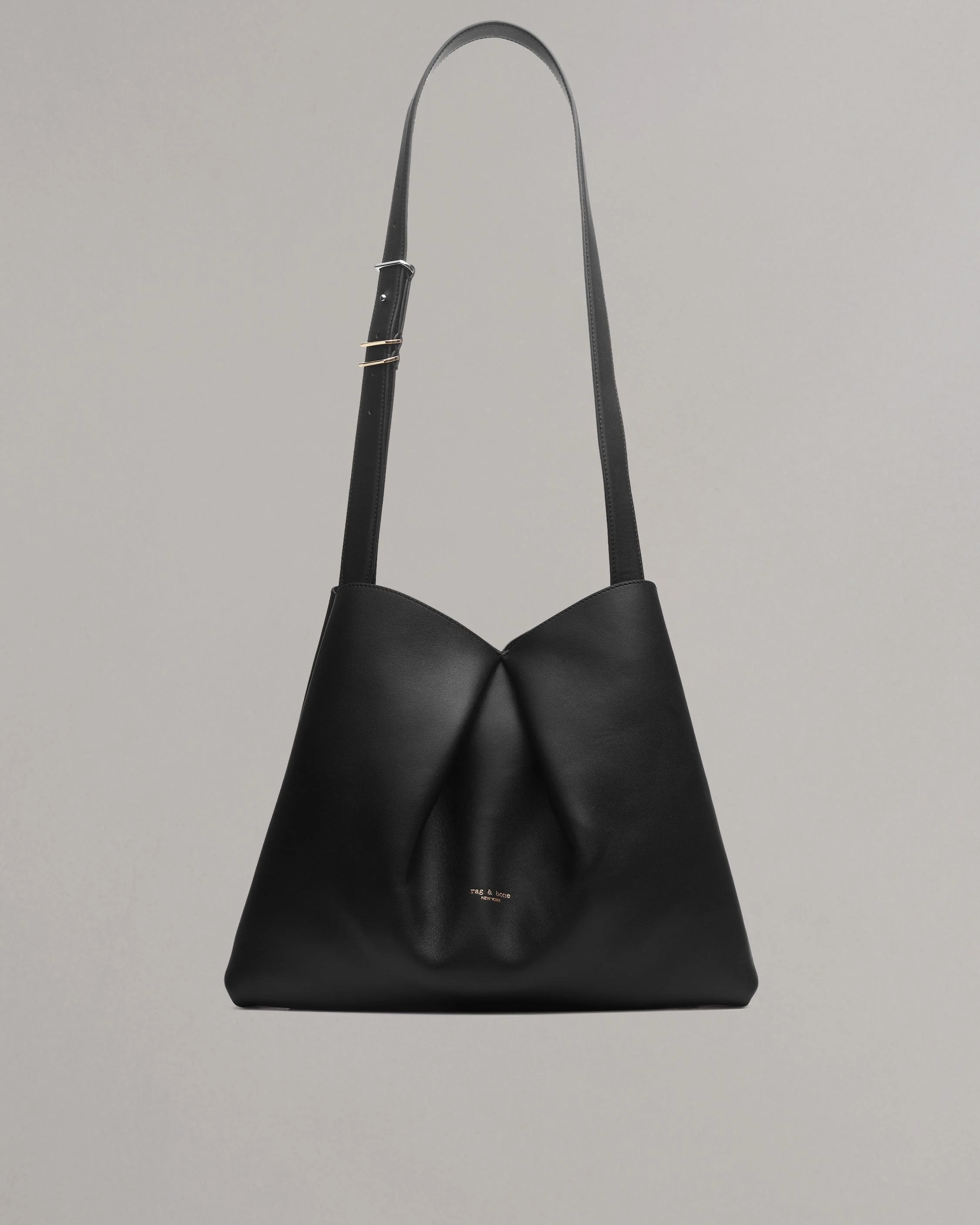 Your ideal companion for a busy day. Crafted from supple, Italian-milled calf leather, this modern take on the classic bucket bag features distinctive inverted pleats and an adjustable crossbody strap. Within its luxe, unlined interior, a central divider and zipped pocket help keep your items organized and easily accessible. Size & Fit Height 15.2" x width 12.8" x depth 4.5" Drop length: 18.9" Features & Details 100% Cow leather Cleaning: Professional leather cleaner The crossbody straps with metal keepers, signature pleats, center divider Magentic lock Two large sections separated by a leather divider, zipper pocket Dust bag included Imported. Italian materials. Product ID: LE100424