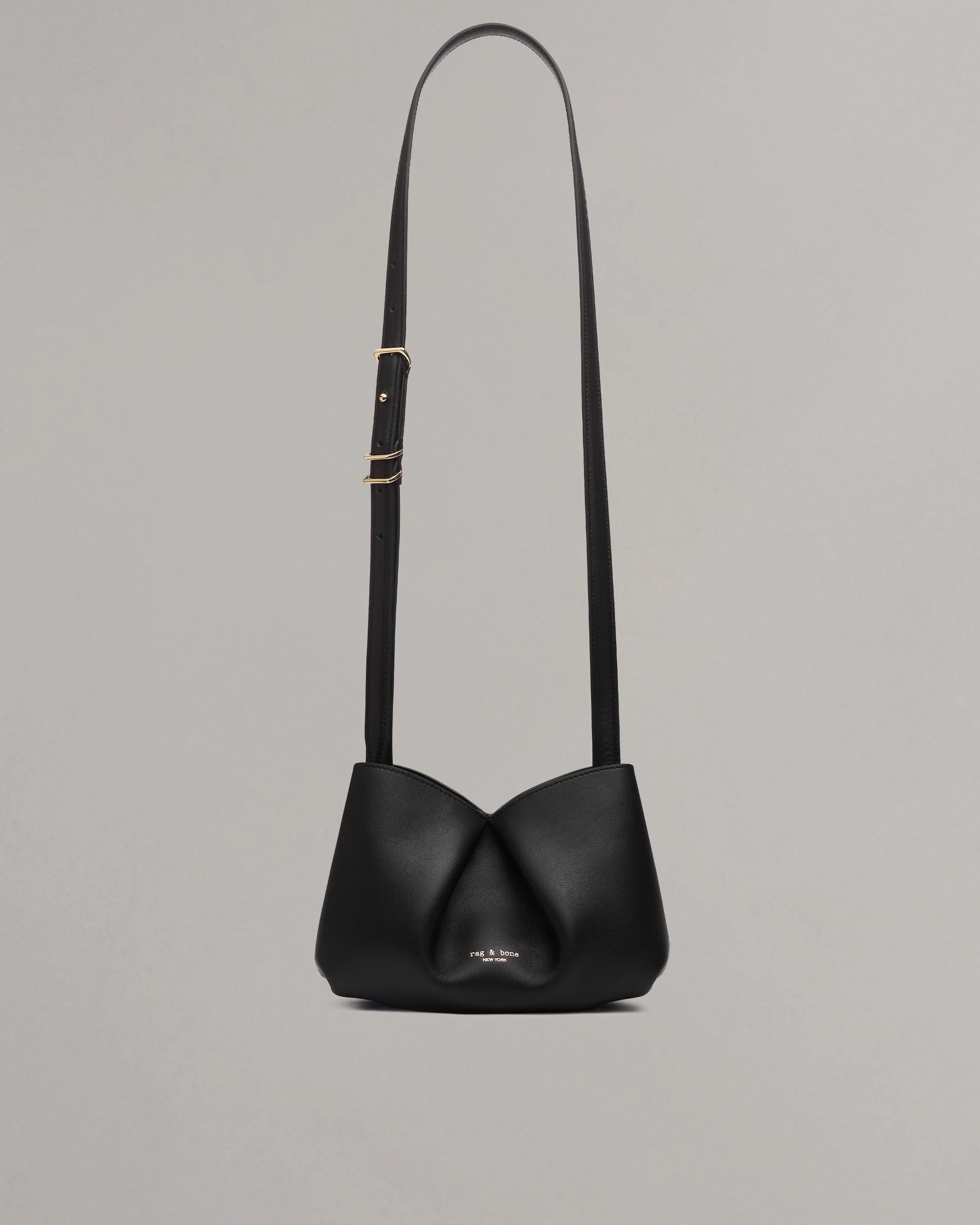 Your chic, compact companion for daytime jaunts and nights out. Crafted from supple, Italian-milled calf leather, this petite and playful take on the classic bucket bag features distinctive inverted pleats and an adjustable crossbody strap. Within its luxe, unlined interior, a central divider and zipped pocket help keep your items organized and easily accessible. Size & Fit Height 8.5" x width 6.5" x depth 3.9" Drop length: 20.5" Features & Details 100% Cow leather Cleaning: Professional leather cleaner The crossbody straps with metal keepers, signature pleats, center divider Magentic lock Two large sections separated by a leather divider, zipper pocket Dust bag included Imported. Italian materials. Product ID: LE100412
