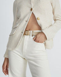 Crafted in 100% leather, this belt features a boyfriend buckle with metal finishing and a 30mm width. Size & Fit XS: 30'', S: 32'', M: 36'', L: 39.5''; Width: 1.25" Features & Details 100% Italian Cow Leather Professional leather cleaner Branded logo buckle and rivet Imported Product ID: WJW23P1002OE02