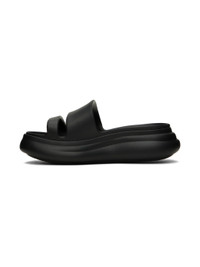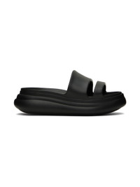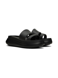 EVA rubber slip-on sandals in black. · Open round toe · Straps at vamp · Logo embossed at molded rubber footbed · Treaded rubber sole Supplier color: Black