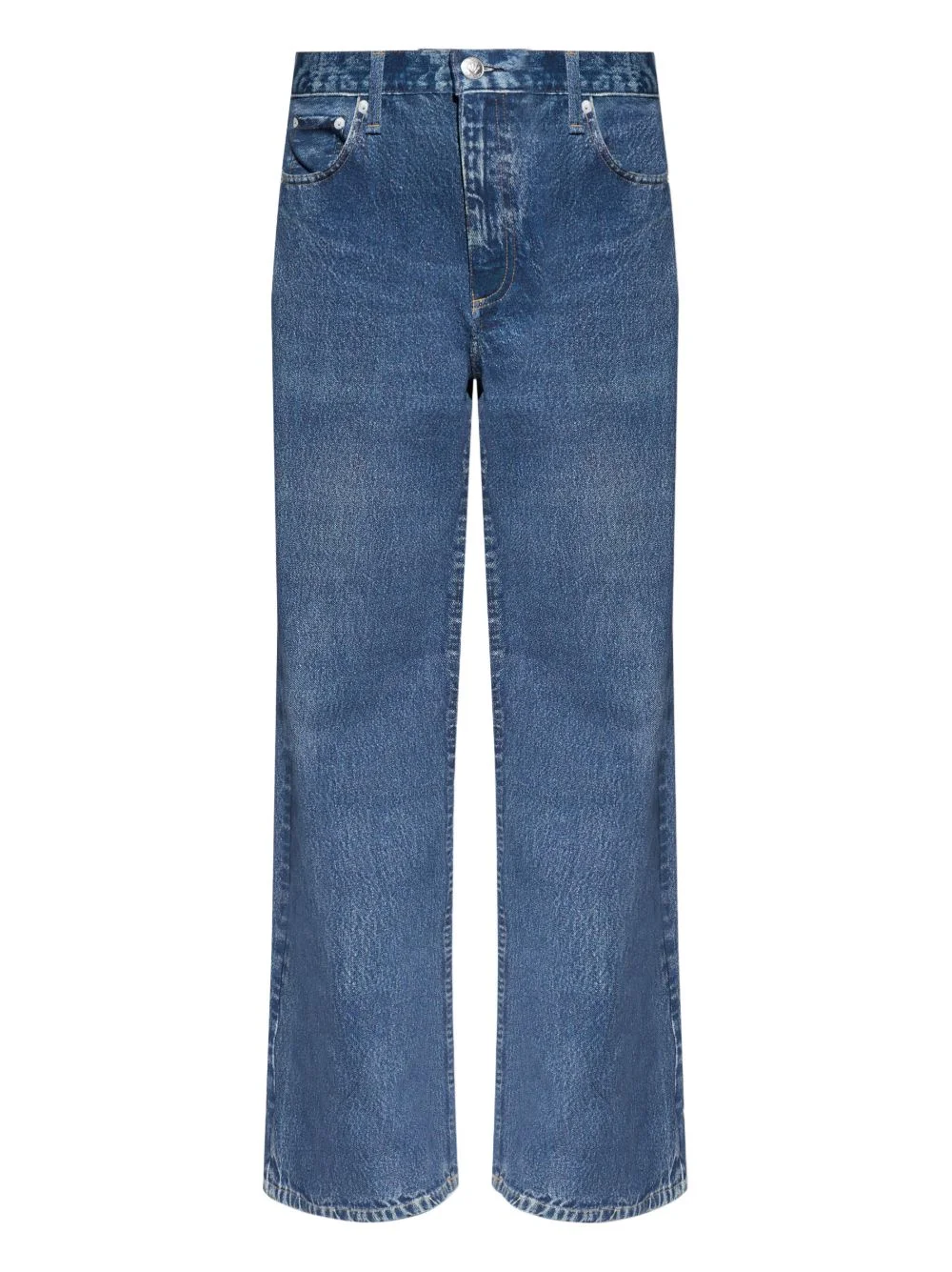 button jeans Highlights - Blue - Button fastening - Belt loops - Five pockets - Wide leg - Faded effect Imported Composition Cotton 100% Washing instructions Read Manufacturer Guidelines