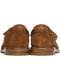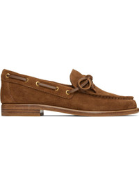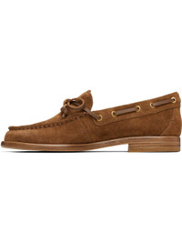 Suede boat shoes in tan. · Moc toe · Lace-up closure · Logo embroidered at heel tab · Antimicrobial OrthoLite® Lazy-Hybrid™ insole · Gold-tone hardware · Rubber sole Supplier color: Umber suede Upper: leather. Sole: rubber. Made in Viet Nam 252055F121006