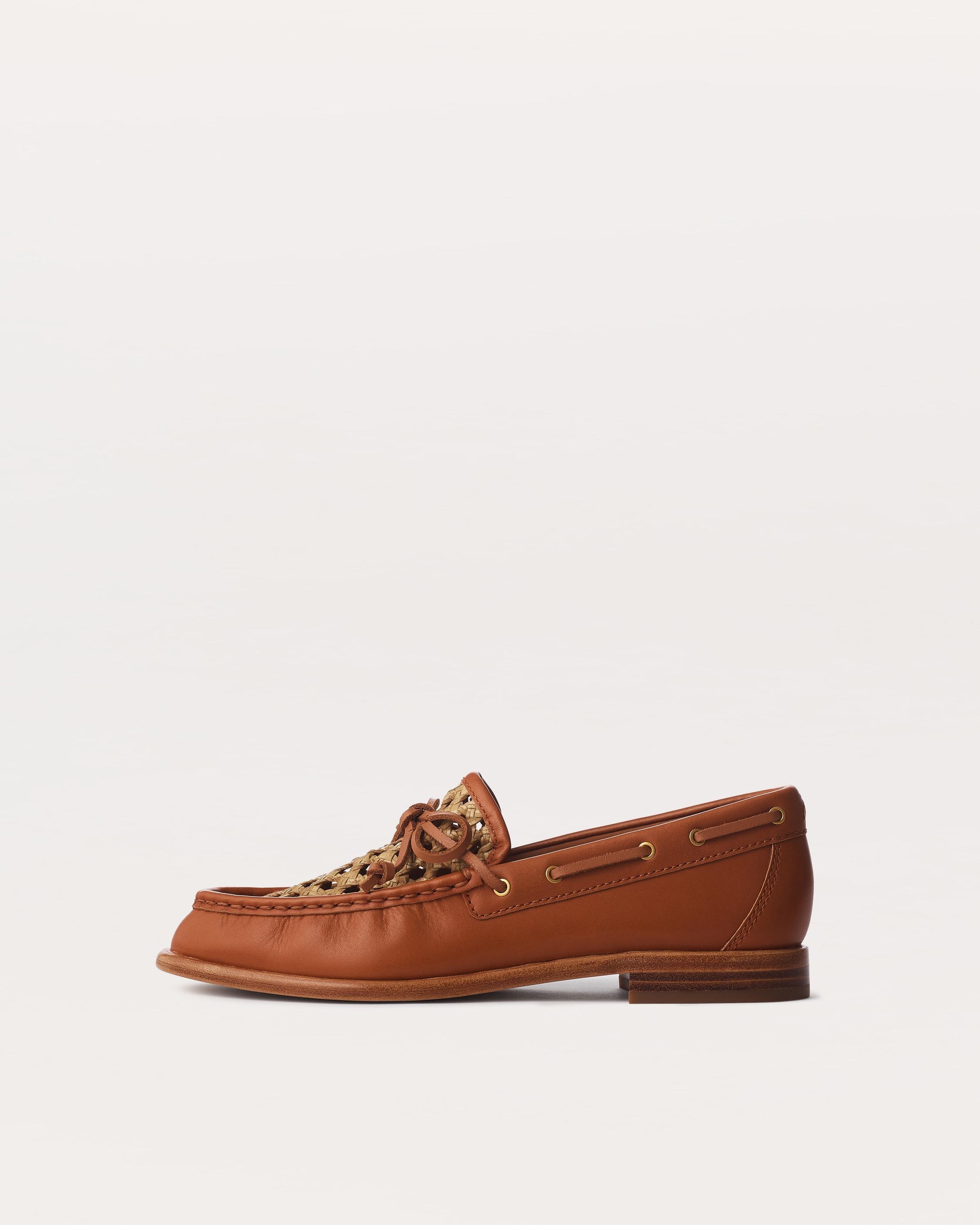 Classic boat shoes, done the rag & bone way. Featuring hallmarks of the slip-on style, like square-cut laces and a rounded moc toe, our leather version upends tradition with an open-weave vamp crafted from recycled materials. It's unlined to mold to your foot with every wear. Inside, you'll find dual-density antimicrobial foam insoles: OrthoLite© Lazy-Hybrid™ for custom-fit comfort, and OrthoLite© Recycled for stability and support. Size & Fit 4mm leather outsole Stacked leather wrapped heel Features & Details Upper: 100% Cow Leather and 100% RPET Outsole: 100% Nubuck Leather Trim: 100% Cow Leather Lining: 100% Sheep Leather Professional Leather Cleaner Cow leather upper Cow leather lace Embroidery logo at heel Ortholite footbed Leather outsole Rubber toplift Slip-on closure Made with recycled materials Imported Product ID: WFF25SF1016PU16