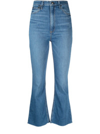 Casey flared cropped jeans Highlights - Indigo blue - Cotton-organic cotton-recycled cotton blend - Denim - Flared - Cropped leg - Mid-rise - Belt loops - Front button and zip fastening - Classic five pockets Imported Composition Cotton 78%, Organic Cotton 9%, Recycled Cotton 6%, Recycled Polyester 6%, Elastane 1% Washing instructions Machine Wash