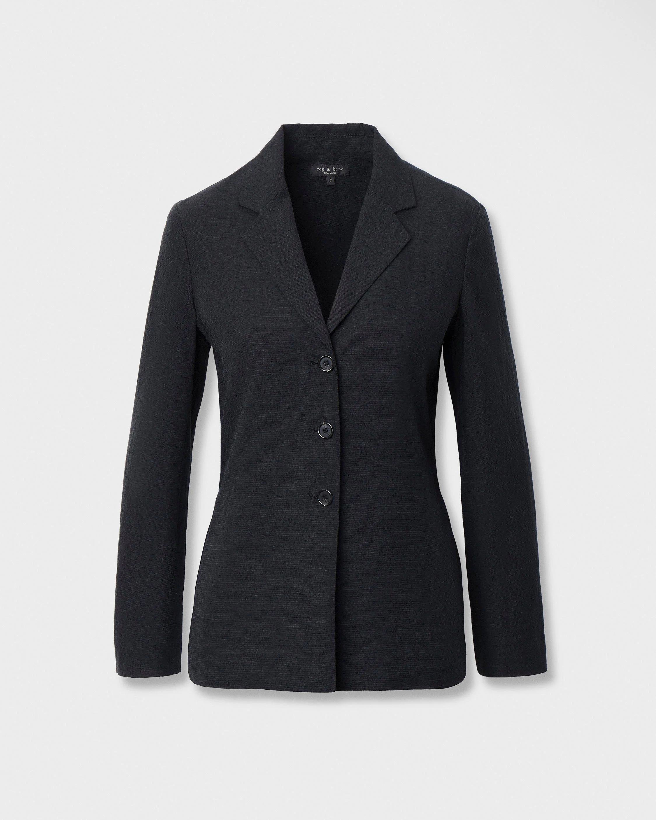 Crafted from a lightweight fabric woven with linen, this single-breasted blazer combines a slightly fitted yet effortlessly tailored look with the comfort of a shirt. A removable tie lets you tighten or loosen the silhouette as you wish. Pair with the matching Chappell Pants or layer over a tee and your favorite denim. Size & Fit • Fitted waist • Fits true to size • Size 4: Front length 28", back length 26", chest 36.5" sleeve length 32.5" • Model is 5'10" wearing size 2 Features & Details • Body: 73% lyocell, 27% linen • Lining: 100% polyester • Striped woven lining at sleeves • Button-up front • Tie at back waist • Machine wash cold inside out on delicate & tumble dry low • Imported Product ID: RA7826S4MTA