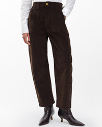 The Charlie. The perfect update to your pant lineup. Defined by a relaxed fit with curved legs and a tapered hem that hits at the ankle. Crafted from stretch corduroy that feels super-soft and has an effortless drape. In Dark Brown with a gold-tone signature dagger button closure and patch-pocket detailing. Size & Fit • High-rise, barrel leg, ankle-length • Fits true to size • Size 26: 13.25" rise, 25.5" inseam, 17.5" leg opening • Model is 5'9" wearing size 24 Features & Details • 78% cotton, 20% modal, 2% spandex • Machine wash cold inside out & hang to dry • Zip fly with button closure • Five-pocket silhouette • Imported Product ID: RJ1725F1XDB