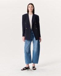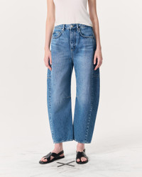 The Charlie. The perfect update to your denim lineup, defined by an exaggerated barrel shape with a relaxed, looser fit and a slight tapered curve that hits at the ankle. Crafted from Lightweight Rigid non-stretch denim that provides structure, but breaks in over time for a soft and comfortable feel. In Accord, a medium indigo wash. Size & Fit High-rise, barrel leg, ankle length Size 26: 13 1/4", 25 1/2" inseam, 17 1/2" leg opening Model is 5'10.5 wearing size 25 Features & Details 100% Cotton Lightweight Rigid Denim in Accord, a medium indigo wash. Machine wash cold inside out with like colors, gentle cycle, do not use bleach, hang to dry, low iron if need, color may transfer. Zip fly with signature dagger button closure and metal rivets Five-pocket silhouette Imported Product ID: WDD25S2994RGAC