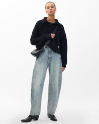 The Charlie. The perfect update to your denim lineup. Defined by a relaxed fit with curved, full legs and a tapered hem. Crafted from Lightweight Rigid non-stretch denim that provides structure, but breaks in over time for a soft and comfortable feel. In Placid, a faded light-medium indigo wash. Size & Fit • High-rise • Barrel leg, full-length • Fits true to size • Size 26: 13.25" rise, 28.5" inseam, 18" leg opening • Model is 5'9" wearing size 24 Features & Details • 100% cotton • Rigid Denim in Placid, a faded light-medium indigo wash • Machine wash cold inside out on delicate & lay flat to dry • Color may bleed • Signature dagger buttons & branded washer rivets • Zip fly with button closure • Five-pocket silhouette • Imported Product ID: RJ1625F1RPL