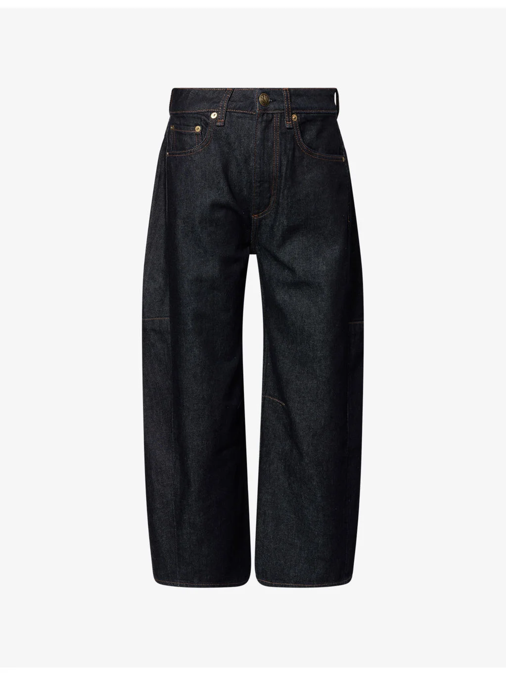 PRODUCT DETAILS - rag & bone denim jeans - 100% cotton - Button and zip-fly fastenings at front - Regular fit, high-rise, barrel leg, belt loops, five pockets, cropped length - Machine wash at 30°C - Made in Turkey - True to size - Size 26: rise 13in / 33cm, inside leg 24in / 61cm, leg opening 18in / 46cm - Model is 5ft 10in/1.78m and wears a size 26 - Midweight, non-stretch Ref: R04501561
