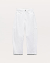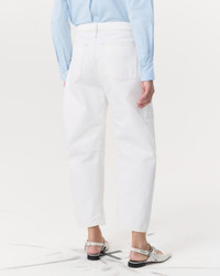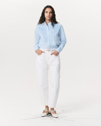 The Charlie. The perfect update to your denim lineup, defined by an exaggerated barrel shape with a relaxed, looser fit, a slight tapered curve, and a raw hem that hits at the ankle. Crafted from Lightweight Rigid non-stretch denim that provides structure, but breaks in over time for a soft and comfortable feel. In White with contrast stitching. Size & Fit High-rise, barrel leg, ankle length Size 26 : 13 1/4", 25 1/2" inseam, 17 1/2" leg opening Model is 5'10" wearing size 25 Features & Details 100% Cotton Lightweight Rigid Denim in White with contrast stitching Machine wash cold inside out with like colors, gentle cycle, do not use bleach, hang to dry, low iron if need, color may transfer Zip fly with signature dagger button closure and metal rivets Five-pocket silhouette Imported Product ID: WDD25S2994RGWH