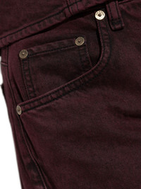 five-pockets jeans Highlights - Burgundy - High-rise waist - Five-pocket design - Concealed fly and button fastening - Tonal topstitching - Belt loops Imported Composition Cotton 100%