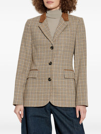 checked suede-trimmed jacket Highlights - Beige - Checked pattern - Button fastening - Notched lapel - Suede trim - Long sleeves Imported Composition Wool 100% Washing instructions Read Manufacturer Guidelines