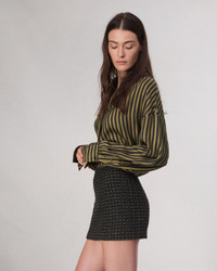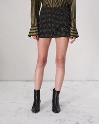 The Christine. Fully lined, our mini skirt is cut in an Italian cotton-blend tweed and features an exposed zip closure along the side. Size & Fit Slim fit, mid rise Size 4: Front length 12 3/4", waist 32", sweep 39" Features & Details 55% Cotton 18% Acrylic 11% Metallized Polyester 10% Polyamide 4% Polyester 2% Other Fibers Dry clean only. Fully lined Exposed zipper at side seam Imported Product ID: WAW24FB009IR09
