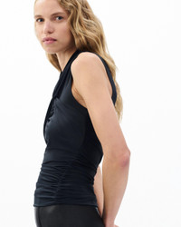 The V-neck, reimagined. This tank top features knotted details at its asymmetrical neckline and subtle draping throughout. A close, stretchy fit elevates this everyday style with a versatile feel for office days, evenings out, and beyond. Size & Fit • Slim fit • Fits true to size • Size small: Body length 20", chest 30", sweep 28" Features & Details • 93% viscose, 7% spandex • Machine wash cold on delicate & lay flat to dry or dry clean • Draped neckline • Imported Product ID: RE7525FT1AW