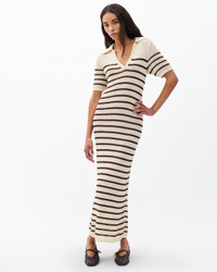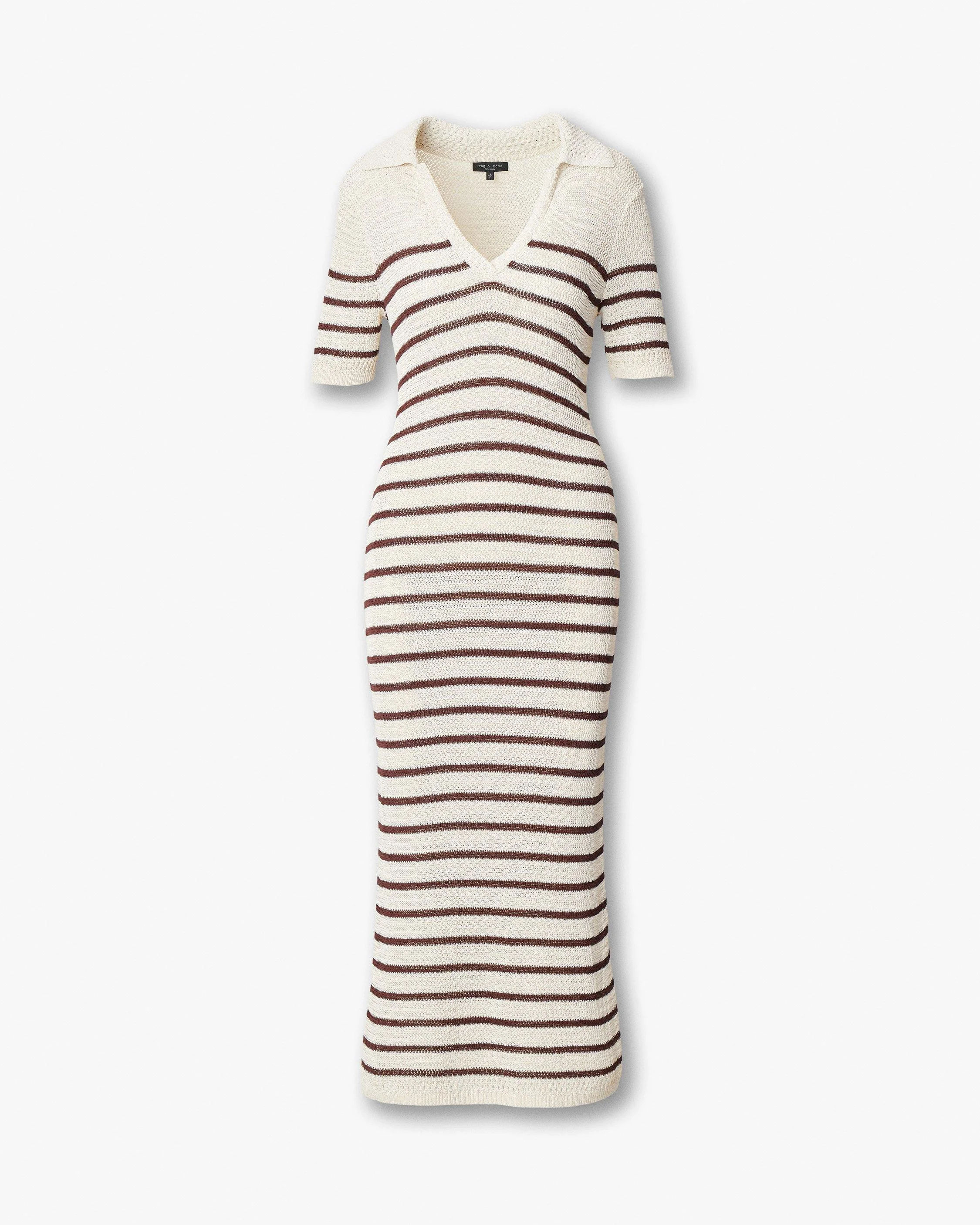 Ultra versatile. Designed with a fitted silhouette, this short-sleeve dress is knit from a soft cotton blend and comes with a comfortable, removable lining. A relaxed polo neckline meets bold stripes to make a classic statement. Equally at home with sandals in warm weather or layered under a parka when it’s cooler. Size & Fit • Slim fit • Fits true to size • Size small: Body length 47.5" , chest 34", sweep 35", sleeve length 9.25" • Model is 5'9" wearing size small Features & Details • Body: 72% cotton, 28% polyamide • Lining: 50% lyocell, 30% cotton • Removable knit lining with snaps at the shoulders • Hand wash & lay flat to dry • Do not dry clean • Imported Product ID: RG7E25H3MCN