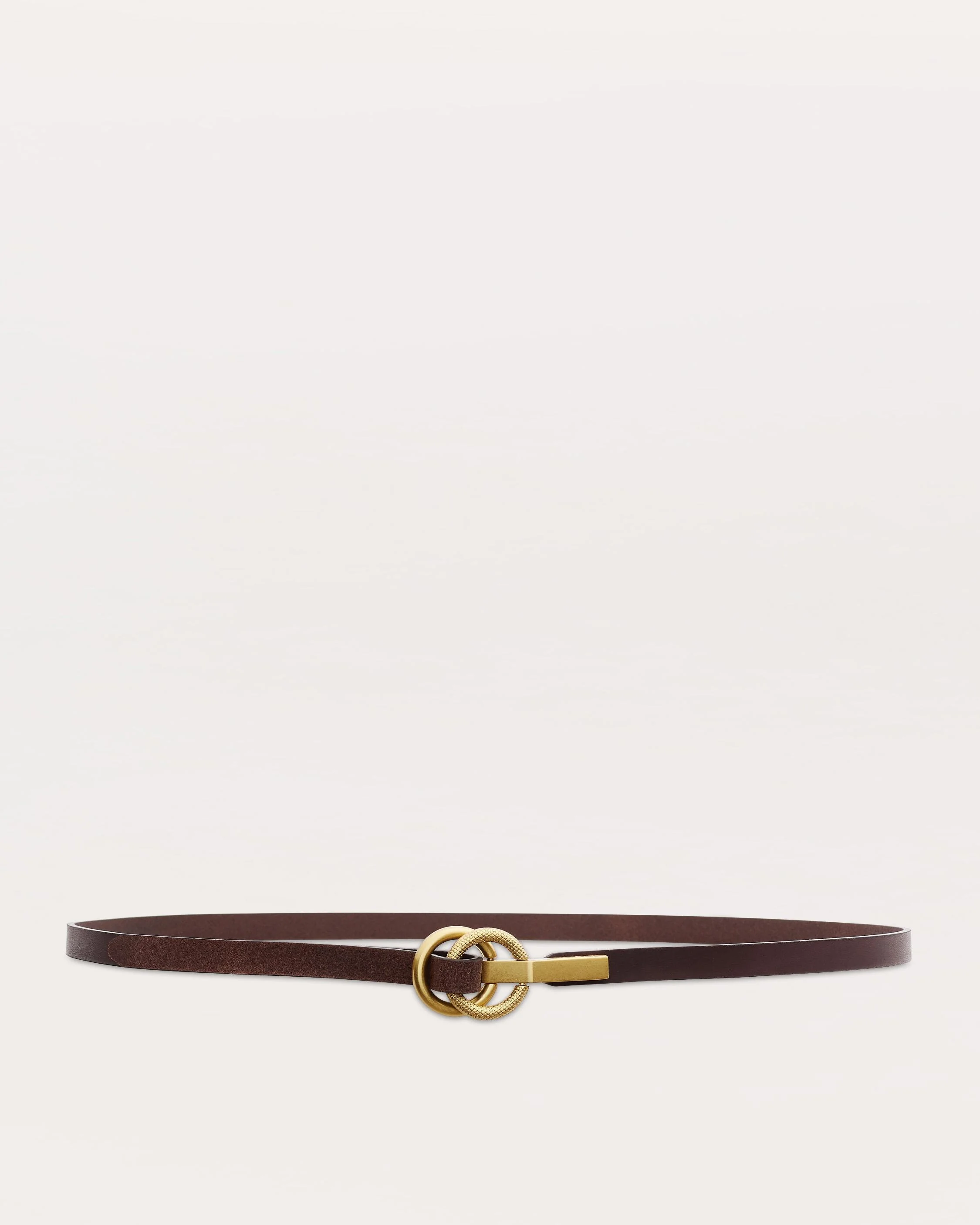 This super-slim belt is crafted in England from Italian-milled leather. Fine-tune its fit exactly as you wish by pulling one end of the strap through the two rings (which are cast in smooth and embossed metal for a touch of texture). It's an everyday essential that belongs in any well-rounded wardrobe. Size & Fit Width: 0.4" Length: XS 37.4", S 39.4", M 43.3", L 47.1" Features & Details 100% Cow Leather Professional leather cleaner Double ring hardware and closure Made in England Product ID: WJW25SB1048LE48