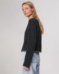 The Davies. Outlined in a specialty metallic Linton Tweed from England, our lady-like cardigan is cut for a boxy silhouette in a blend of wool and alpaca. Size & Fit Relaxed fit Size Small: Body length 20", chest 36", sweep 35", sleeve length 23 1/2" Model is 5'7.5" wearing size small Features & Details Self: 38% Wool 38% Alpaca 24% Nylon Trim 1: 37% Wool 34% Alpaca 28% Nylon 1% Spandex Trim 2 73% Wool 11% Polyamide 9% Polyester 7% Metallic Dry clean only Woven tweed trim, metal hook and eyes Imported Product ID: WAS24F027US27