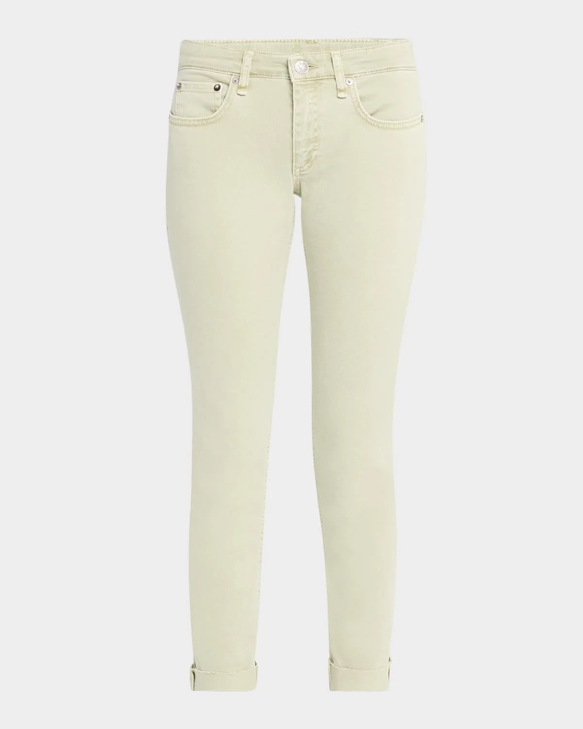 - Rag & Bone "Dre" boyfriend jeans with a cuffed hem in colored stretch-denim - Low-rise; sits at hip - Five-pocket style - Slim fit - Full length - Button/zip fly; belt loops - Cotton/elastane - Machine wash cold - Imported