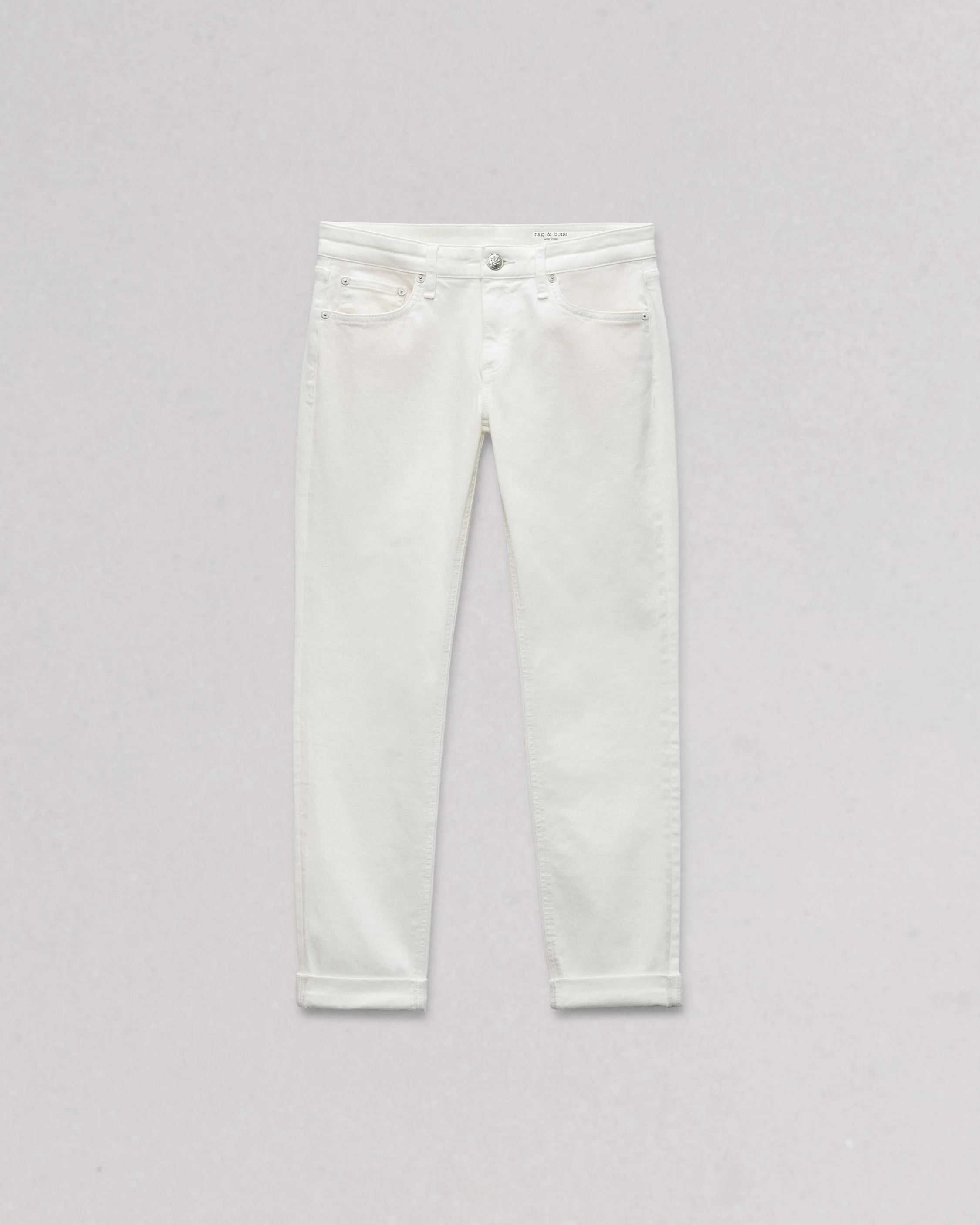 The Dre Slim Boyfriend. A low-rise slim fit pulled straight from the archives and evolved for today. Crafted from our Vintage Stretch denim for an archival look with just a touch of stretch. In Optic White, a true bright white. Size & Fit Low-rise slim fit, ankle length Size 26: 31.5" waist, 39.25" hip, 8.75" rise, 30" inseam (cuffed to 27"), 13" leg opening Model is 5'8.5" wearing a size 25 Features & Details 91% Cotton 8% Polyester 1% Elastane Vintage Stretch, Optic White Machine wash cold inside out with like colors, do not use bleach, hang to dry, use warm iron if necessary, color transfer may occur Signature dagger shank button at center front with a zipper fly, metal rivets Zipper fly Five-pocket silhouette Imported Product ID: WDD24S2643L6OW