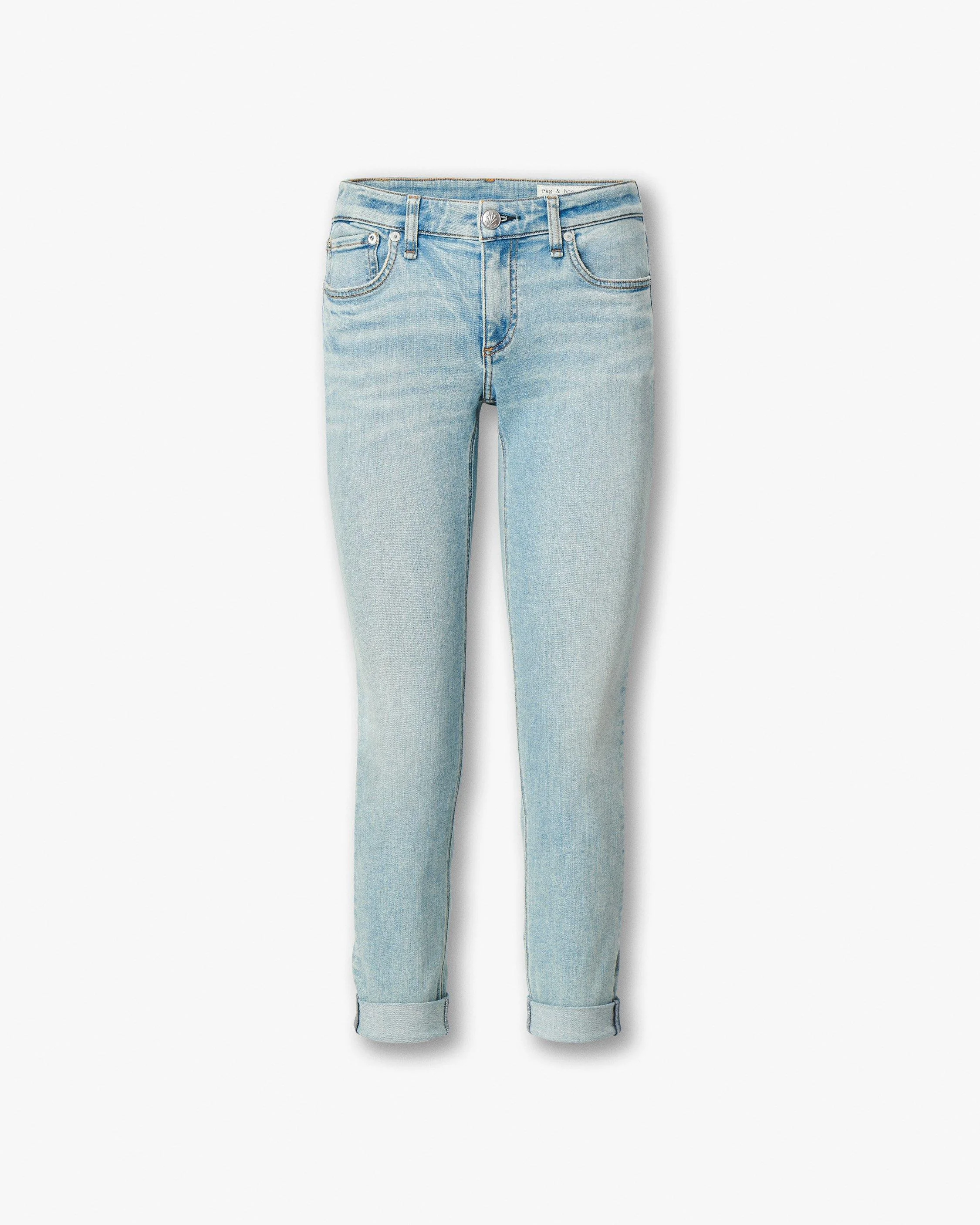 The Dre Slim Boyfriend. Low-rise slim-fit jeans pulled straight from the archives and updated for today with a cut-and-cuffed hem. Crafted from our Vintage Stretch denim for a timeworn look with added comfort. In Daphne, a light indigo wash. Size & Fit • Low-rise slim boyfriend jean • Ankle length when cuffed • Size 26: 8.75" rise, 30" inseam, 12.75" leg opening Features & Details • 99% cotton, 1% lycra • Vintage stretch, light indigo wash • Machine wash cold inside out, do not use bleach • Hang to dry, do not iron • Color may transfer • Zipper and button closure • Cut hem that arrives in a double-rolled cuff • Five-pocket silhouette • Imported Product ID: RJ3225F1VDA
