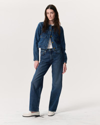 Classics. For a new era. This modern, rugged twist on the lady jacket is crafted from our Lightweight Rigid non-stretch denim that provides structure, but breaks in over time for a soft and comfortable feel. Braid-embossed metal buttons add a chic contrast. Size & Fit Fits true to size Size Small: Front length 20 1/4",back length 19 1/2", chest 38 1/4", sleeve length 32 1/2" Model is 5'10.5 wearing size small Features & Details 100% Cotton Lightweight Rigid Denim in Adeline, a medium indigo wash Machine wash cold inside out with like colors, gentle cycle, do not use bleach, hang to dry, low iron if need, color may transfer Signature braided shank button at center front Front button closure Imported Product ID: WDD25S1495RGAD