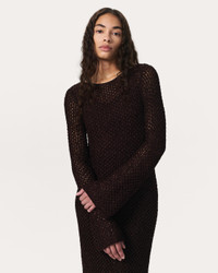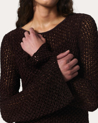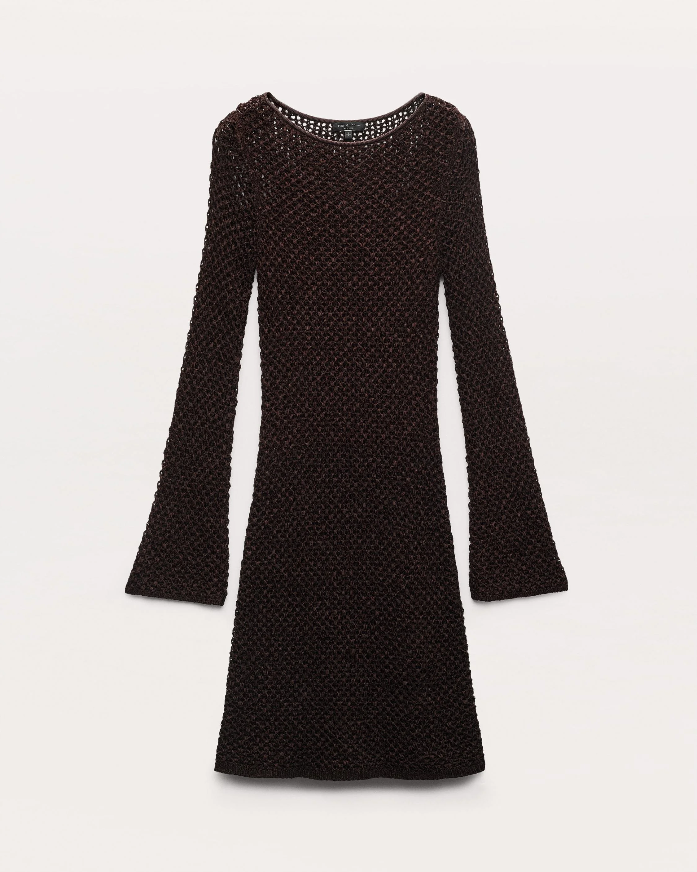 Sheer intentions. With subtly flared hems and an open-knit design crafted from luxe, textured yarn, this boatneck dress brings the drama wherever its worn. Its relaxed look and feel are elevated by a jersey slip, which provides coverage and detaches so you can wear either layer alone or together. Size & Fit • Relaxed fit boatneck mini dress • Fits true to size • Size Small: body length 32.5" | chest 31" | sweep 35" | sleeve length 23 " • Model is 5'9" wearing size small Features & Details • 74% viscose, 26% polyamide • Metal snaps at internal shoulder • Machine wash cold on delicate & lay flat to dry or dry clean, delicate process • Imported Product ID: WAS25P017LB17