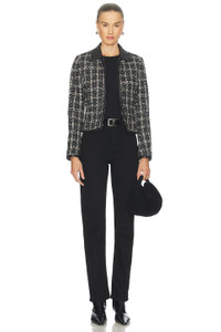 - Self: 100% Polyester Lining: 51% Viscose, 49% Polyester Lining 2: 51% Viscose, 49% Polyester Self 2: 100% Polyurethane Self 3: 100% Polyester - Dry clean only - Front hook and eye closures - Fully lined - Front faux pockets - Faux leather collar and trim - Midweight tweed fabric - Revolve Style No. RGBR-WO150 - Manufacturer Style No. RA6N25F4MTA