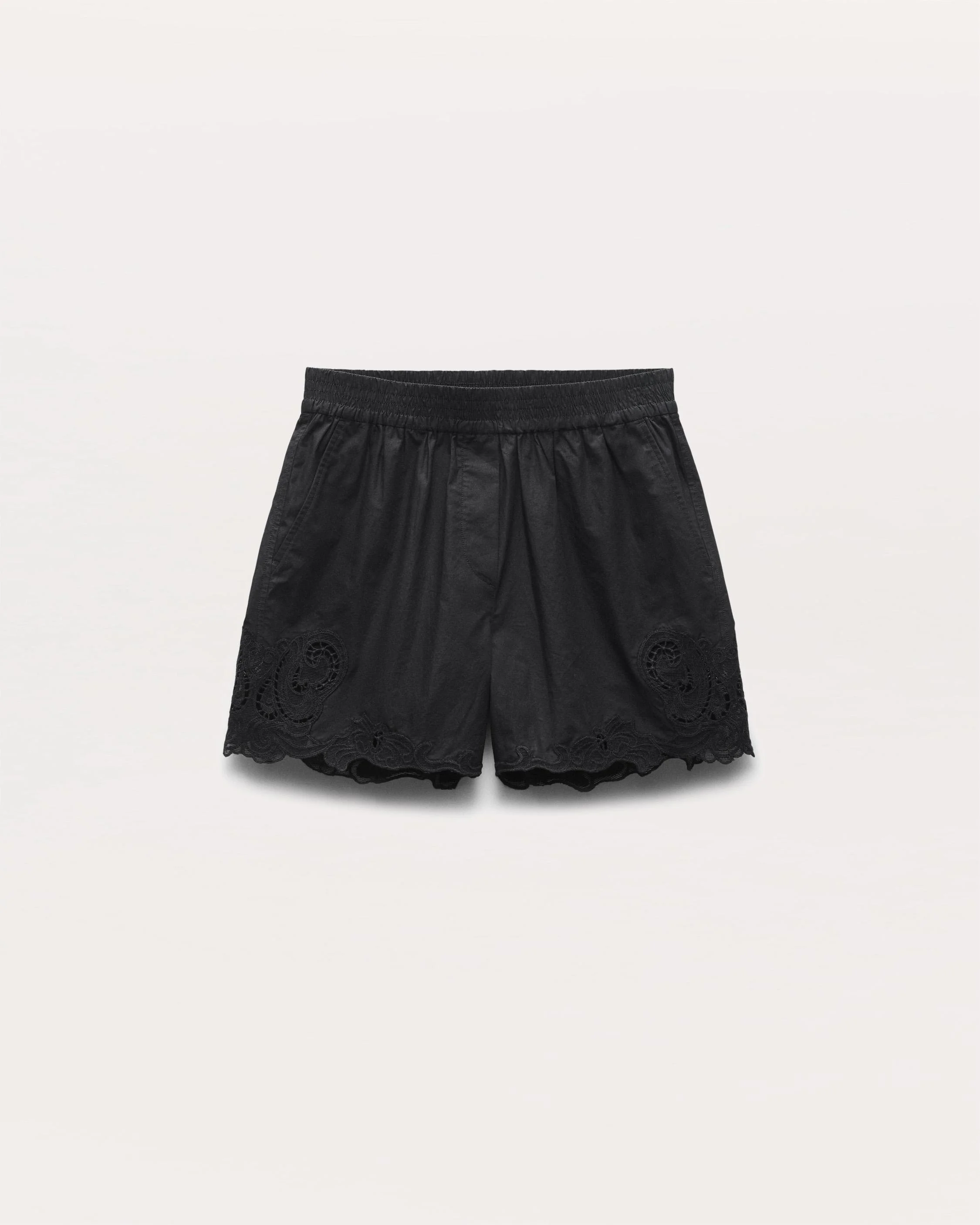Elevated yet effortless shorts for warmer days. Tailored from crisp cotton poplin with the perfect 4" inseam, the lightweight style features intricate lace embroidery at the sides and hem. Its pull-on elastic waistband and overall silhouette nod to classic boxer shorts while ensuring total comfort and ease. Size & Fit Boxer short fit Size Small: 12" front rise, 4" inseam, 26 1/2" leg opening Model is 5'10" wearing size small Features & Details 100% Cotton Machine wash cold with like colors, delicate cycle, do not bleach, tumble dry low, cool iron Pull-on elastic waistband and embroidery detail at sides On-seam pockets Imported Product ID: WAW25S9003LA03