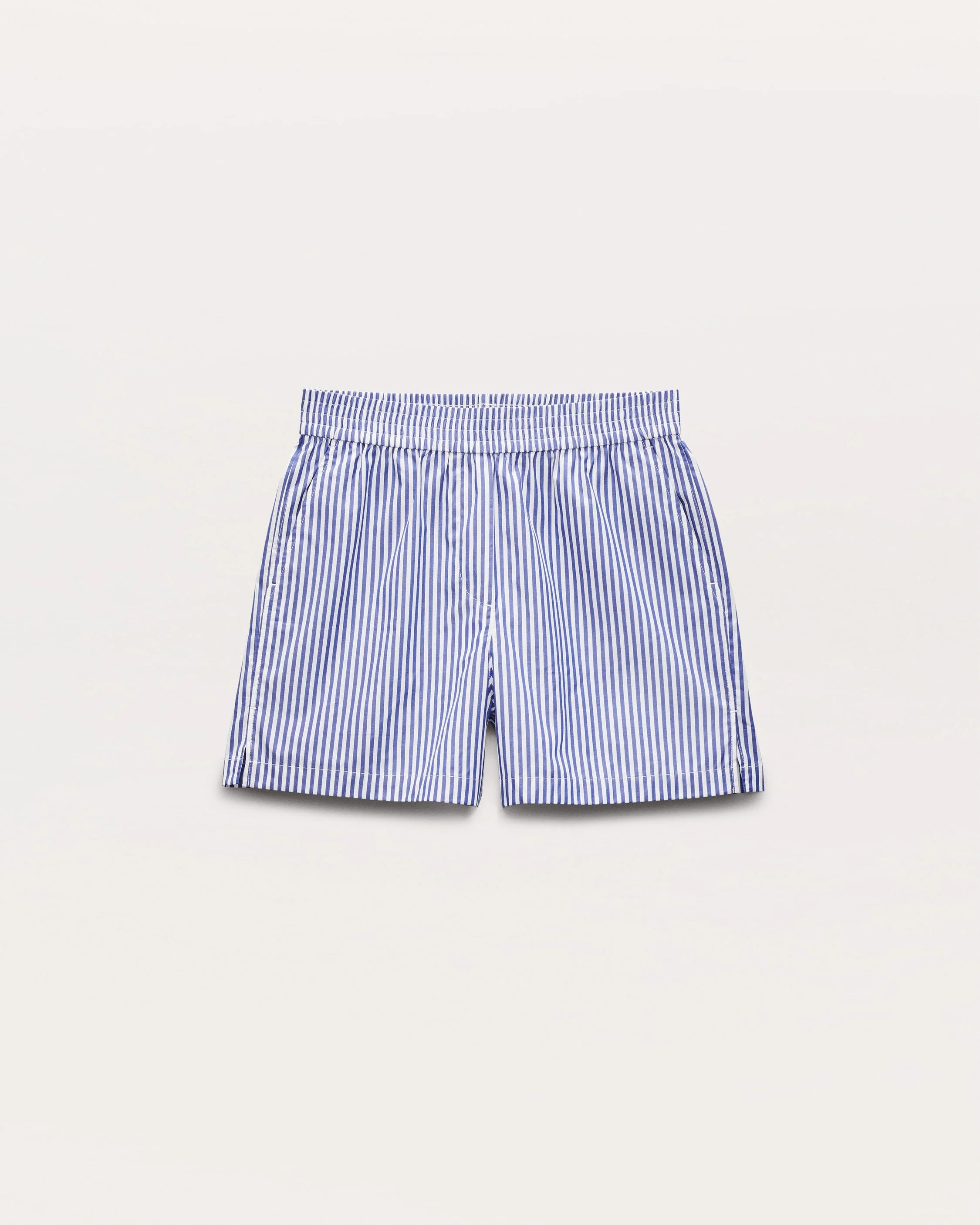 Light & easy. Crafted from breezy cotton poplin in chic summer stripes, these unlined boxer shorts are ideal for warm days. Their relaxed fit and pull-on elastic waistband ensure absolute comfort, while the 4" inseam offers just the right coverage for all-day wear, anywhere. Size & Fit • Mid-rise • Relaxed fit • Size Small: 12" front rise | 4" inseam | 26" leg opening • Model is 5'11" wearing size small Features & Details • 100% cotton • Pull-on elastic waistband • Unlined • Front slant pockets, back patch pocket • Machine wash warm & tumble dry medium • Imported Product ID: WAW25P90037603