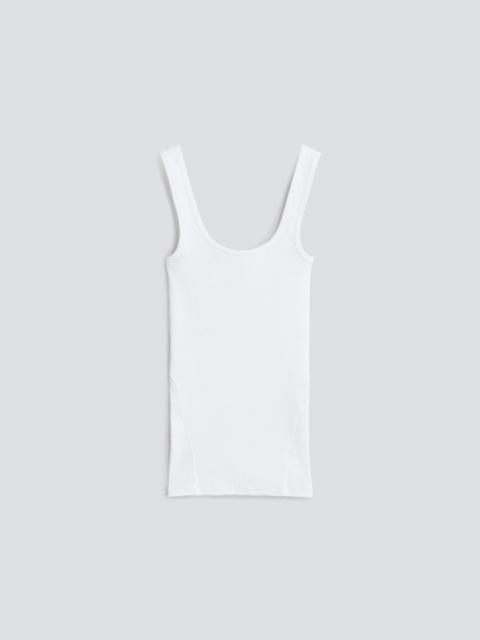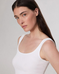 By definition you can't live without this rib tank. Cut in an ultra flattering slim fit with a scoop neck and knit from organic-in-conversion cotton with an added touch of stretch to move around in. Essential. Size & Fit Slim Fit Size Small: Length from shoulders 24", chest 20",sweep 20" Model is 5'9.5" wearing a size small Features & Details 3X3 Organic In Conversion Rib 95% Organic Pima Cotton In Conversion 5% Spandex Machine Wash Cold Inside Out With Like Colors, Gentle Cycle, Do Not Use Bleach, Lay Flat To Dry, Cool Iron If Needed Signature Torqued Seaming Details, Double Needle Finishing's Made in Peru Product ID: WCC21PT003CA03