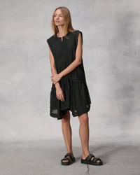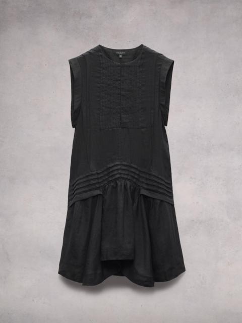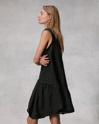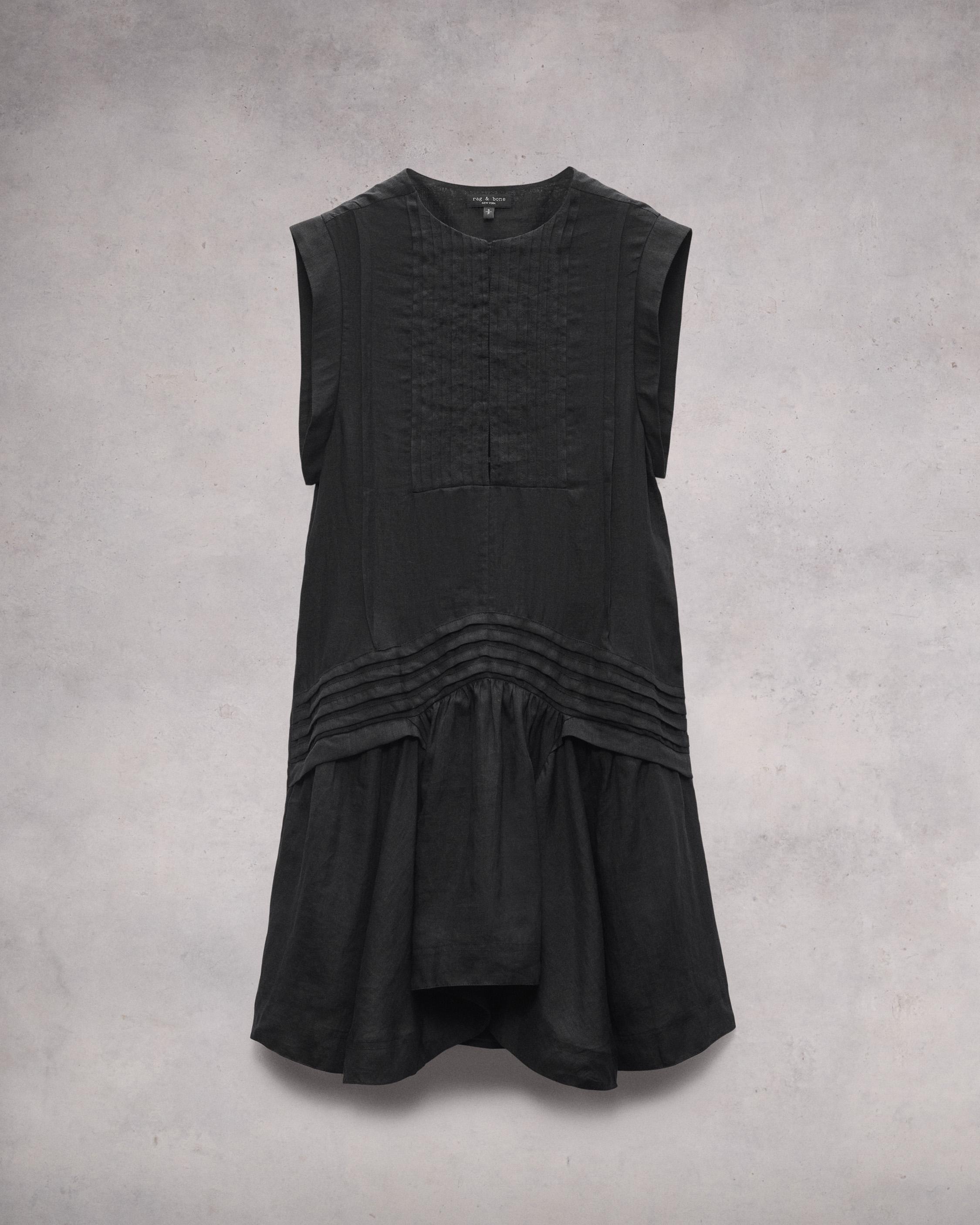 The Este. Pintucked in a lightweight fabrication, our mini dress is draped for a relaxed silhouette with covered partial button closures. Includes a separate slip. Size & Fit Relaxed fit, mini length Size Small: 40" chest, 40" waist, 34 5/8" front length, 106 3/4" sweep Model is 5'7.5" wearing a size small Features & Details 100% Ramie Slip: 100% Modal Machine wash cold with like colors, delicate cycle, do not bleach, tumble dry low Buttons hidden at center front Separate slip Imported Product ID: WAW24P30176917