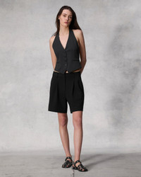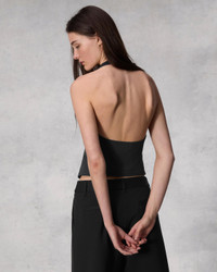 The Ethel. Go from your 9-to-5 to after hours. Tailored in viscose crepe, our vest is cut along a halter neckline for a slim silhouette. Pair it back to the Cecily pant. Size & Fit Fits true to size, hits at the waist Size 4: 30 3/4" chest, 29 1/4" waist, 22 1/4" front length Model Is 5'10.5" wearing a size 2 Features & Details 97% Viscose 3% Elastane Lining: 60% Polyester 40% Cotton Dry clean only Metal logo buttons at center front Fully lined Hip besom pockets Imported Product ID: WAW24P40007500