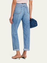 Rag amp; Bone "Featherweight Dre" boyfriend jeans crafted from our featherweight denim that's supremely soft and super light, with an easy drape. Feels airy amp; effortless. Approx. 30" inseam Lowrise; sits at the hip Fivepocket style Baggy fit Ankle length Button/zip fly; belt loops Cotton/lyocell Machine wash Imported