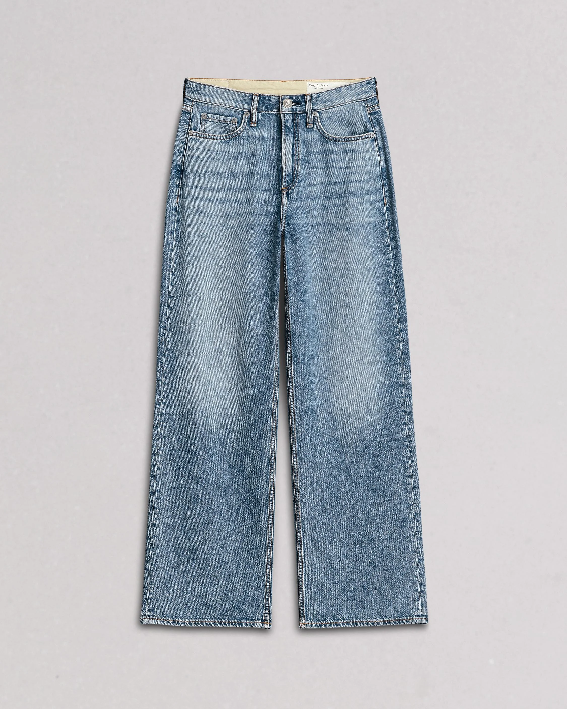 The Logan is a laid-back, wide-leg, mid-rise jean made from our ultra-light Featherweight denim. With a roomy cut through the hip and thigh, it doesn't get more comfortable than this. Pro tip: take your natural size and wear low on your waist for a relaxed look or size down for a higher rise. Available in Audrey, a light indigo wash. Size & Fit Relaxed fit, mid-rise, wide leg jean Size 26: 11 5/8" rise, 31 1/2" inseam, 20" leg opening Model is 5'10" wearing a size 25 Features & Details 64% Cotton 36% Lyocell Machine wash cold inside out with like colors. Do not use bleach. Hang to dry. Do not iron. Indigo may bleed. Zip front washer rivet, Clean hem Light weight rigid fabric, light indigo wash Imported Product ID: WDD23S2935F2AU