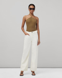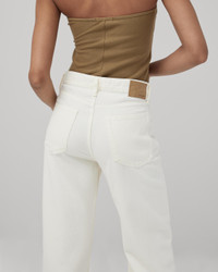 The Logan is a laid back, wide leg, mid-rise jean made from our ultra-light Featherweight denim. With a roomy cut through the hip and thigh, it doesn't get more comfortable than this. Available in Ecru. Pro tip: take your natural size and wear low on your waist for a relaxed look or size down for a higher rise. Size & Fit Relaxed fit, mid-rise, wide leg jean, true to size Size 26: 11 5/8" rise, 31 1/2" inseam, 20" leg opening Model is 5'9 wearing a size 25 Features & Details 61% Organic Cotton 39% Recycled Lyocell Machine wash cold inside out with like colors. Do not use bleach. Hang to dry. Do not iron. Indigo may bleed. Silver dagger shank, silver button fly, silver rivets, white leather patch Imported Product ID: WDD22H2935STEC