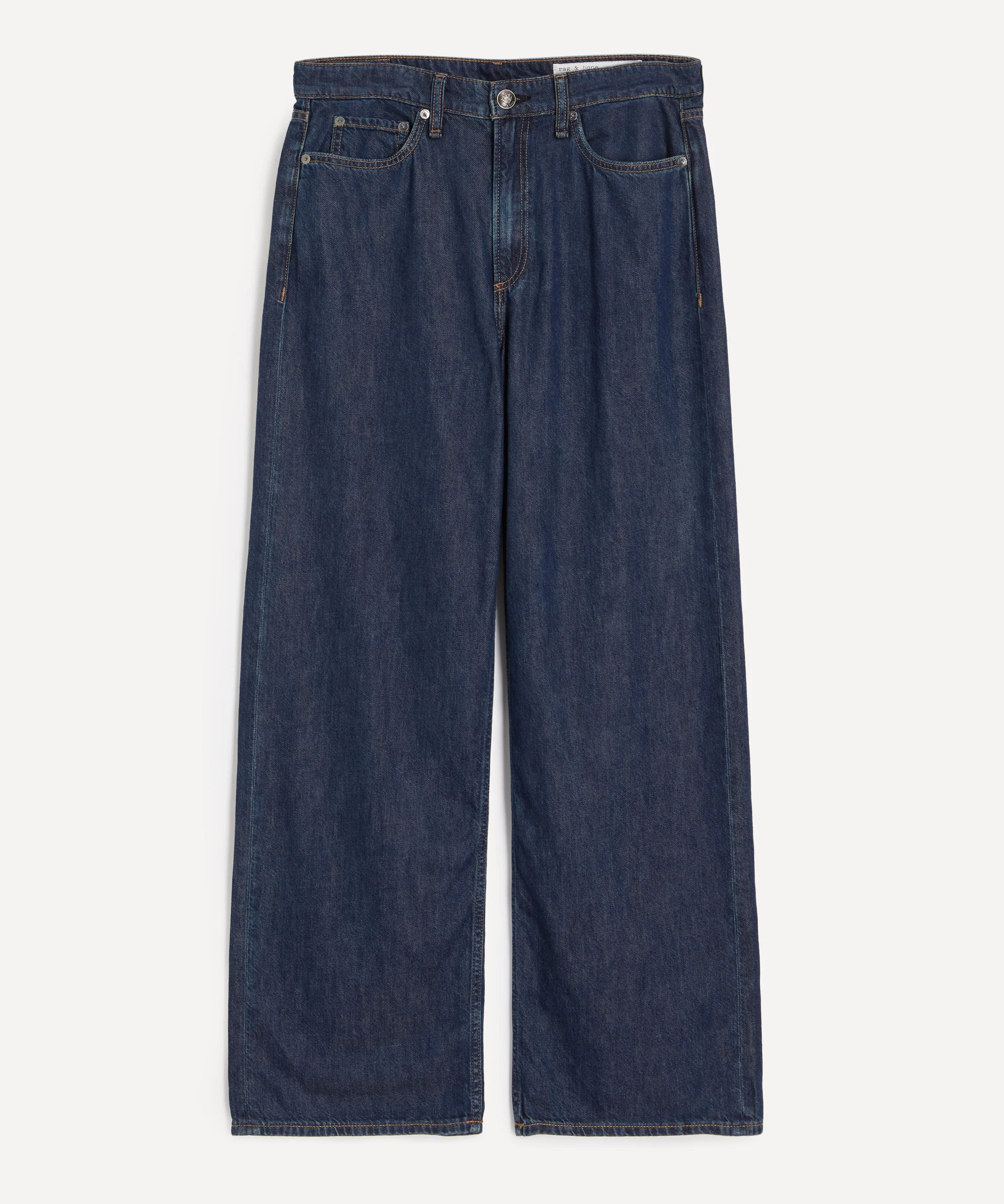 DETAILS Logan jeans Lightweight Featherweight denim Mid-rise Relaxed fit Wide leg Full length Front rise: 11 5/8” Inseam: 31 1/2” Leg opening: 20” Dagger shank Zip fly with button fastening Branded rivets 5-pocket construction Branded jacron patch SIZE & FIT Model is 175cm/5'9"; Chest: 76cm; Waist: 58cm; Hip: 90cm and wears a size 27 COMPOSITION & CARE 64% Cotton; 36% Lyocell Machine wash cold inside out with similar colours. Gentle cycle, do not use bleach. Hang to dry, low iron if need