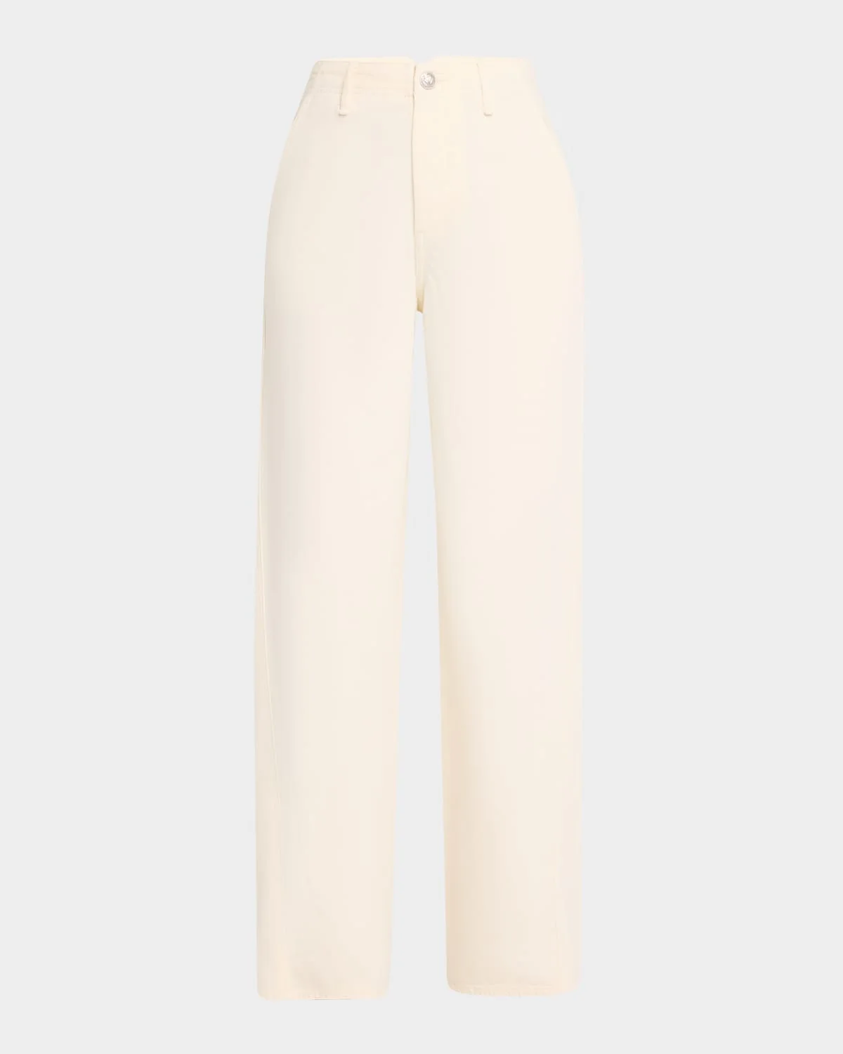 Rag amp; Bone "Featherweight Sofie" jeans in ecru denim Approx. 12" rise; 33" inseam High rise Fourpocket style Tailored, wide legs Full length Button/zip fly; belt loops Cotton/Tencel® lyocell Machine wash cold Imported