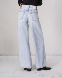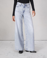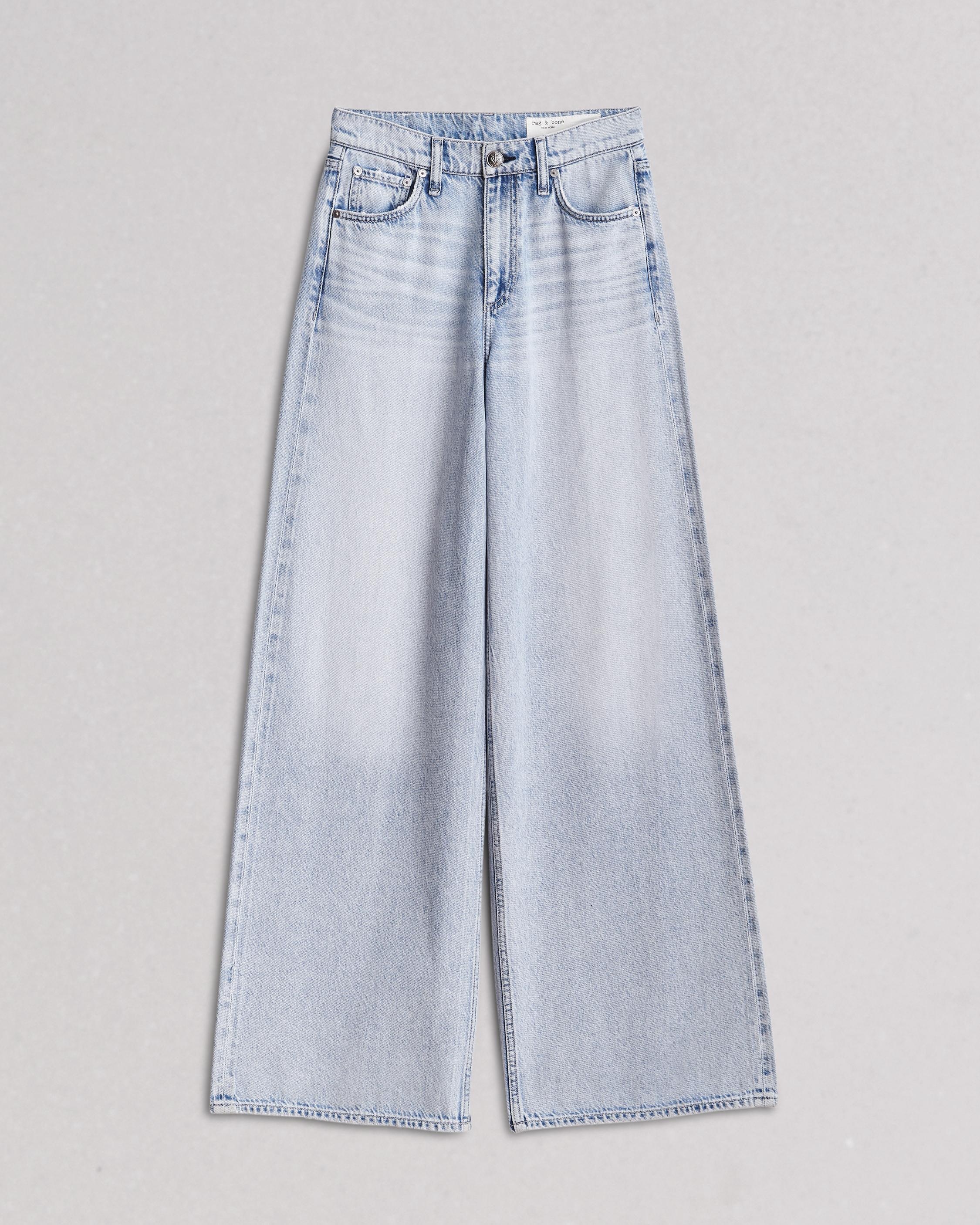 The Sofie. A high-rise fit with a wide leg that's a rag & bone office favorite. Crafted from super-soft Featherweight denim for a light, easy drape. In Kierra, a light-wash indigo, with a clean, finished hem. Size & Fit 11 3/4" Front Rise, 34" Inseam, 25 1/4" Leg Opening Model is 5'9.5" wearing a size 25 Features & Details 61% Cotton 39% Tencel Featherweight, light indigo wash Machine wash Zipper front closure with gunmetal dagger shank Eggshell rag & bone embroidery Clean finished, irregular grinding on hem & cream patch Five- pocket silhouette Imported Product ID: WDD23F2919FTKI