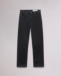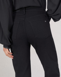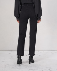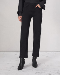 The Harlow. Mid-rise, fitted through the thigh, and ankle length. Crafted in our Flexi denim that smooths, sculpts, and stretches for ultimate comfort and style wherever life takes you. In Black with a clean hem. Size & Fit Mid-rise, straight leg, ankle length Size 26 : 11" front rise, 28 1/2 " inseam, 15 1/2" leg opening Features & Details 43% Viscose 33% Cotton 17% Tencel 5% Polyester 2% Elastane Flexi, black Machine wash cold inside out with like colors, gentle cycle, do not use bleach or tumble dry, hang to dry, low iron if need, color may transfer. Signature dagger shank button at center front with a zipper fly, metal rivets, clean hem Five-pocket silhouette Imported Product ID: WDD24F2934N5BL