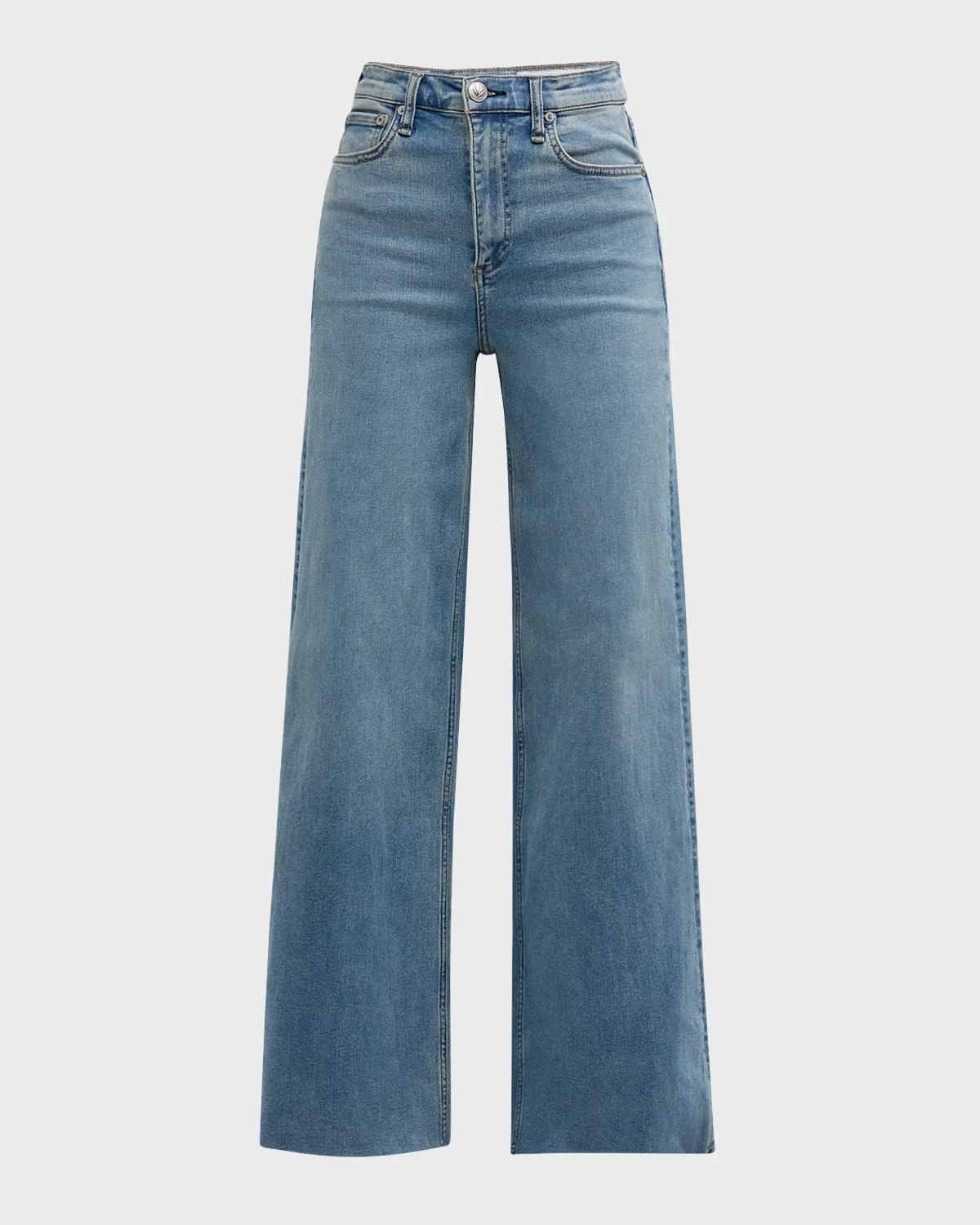 - Rag & Bone "Flexi Sofie" wide-leg jeans featuring a raw hem in light-wash stretch-denim - Approx. 12" rise; 32" inseam - High rise - Five-pocket style - Easy fit - Full length - Button/zip fly; belt loops - Cotton/lyocell/polyester - Machine wash - Imported - Size Note: Item runs large, consider ordering a size down.