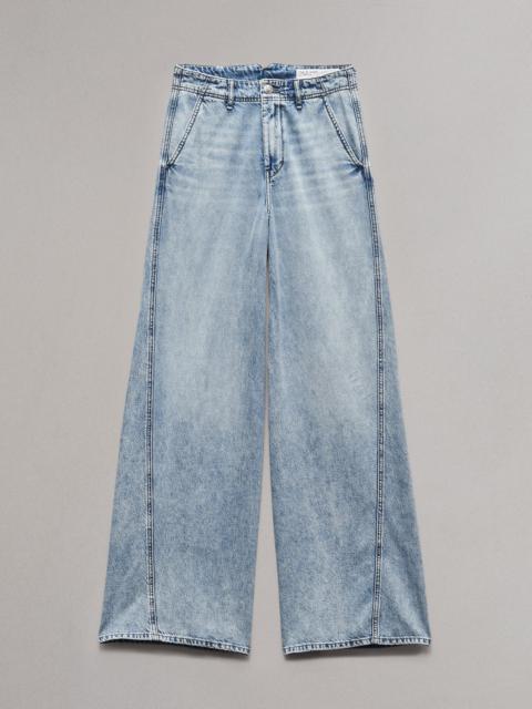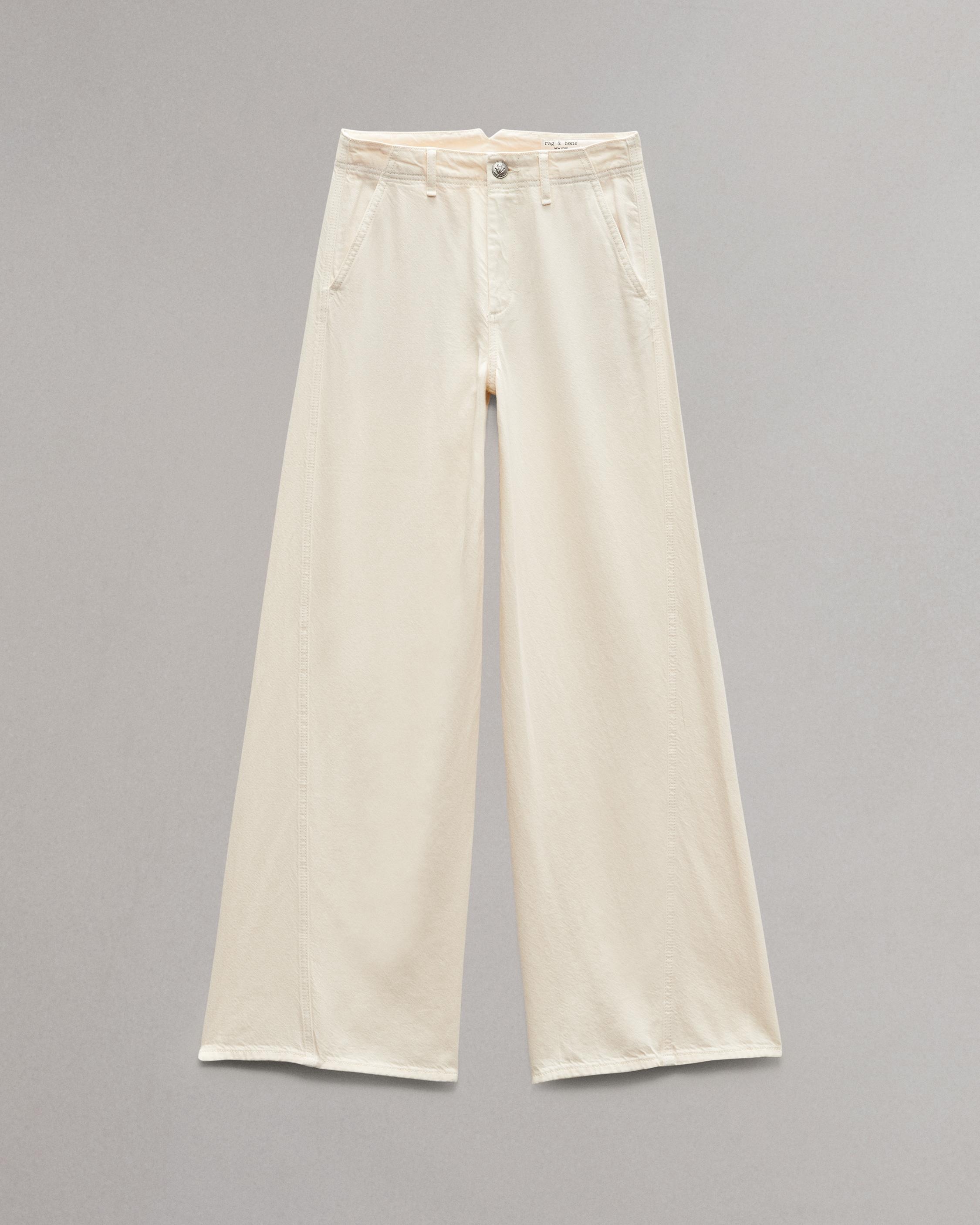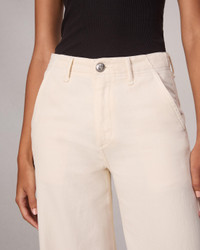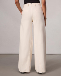 The Tailored Sofie. A dressier version of our beloved high-rise, wide-leg jeans with front pockets at the sides and back welt pockets. Crafted from our Featherweight denim that's supremely soft and super light, with an easy drape. In Ecru, a cream hue. Size & Fit High-rise, wide leg, full length Size 26 : 12" front rise, 33" inseam, 25 1/4" leg opening Model is 5'9" wearing size 25 Features & Details 64% Cotton 36% Tencel Featherweight denim in Ecru Machine wash cold inside out with like colors, gentle cycle, do not use bleach, hang to dry, low iron if need, color may transfer Signature dagger shank button at center front with a zipper fly, metal rivets, clean hem Center front shank button and zip closure Five-pocket silhouette Imported Product ID: WDD24H3003FWEC