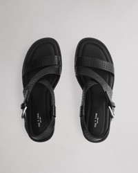 The Geo Block Heel. Wrapping the foot in basket weave-stamped leather and secured with a custom buckle, our wrap sandal sits atop a geometric stacked heel. Crafted with dual-density antimicrobial foam insoles: OrthoLite Lazy-Hybrid for custom-fit comfort, and OrthoLite Recycled for stability and support. Size & Fit 1.9" Polished stacked leather heel Shaft height: 3.5" Features & Details Upper material: 100% Sheep Leather Outsole material: 35%TPU 65% German sole Professional leather cleaner Ortholite Footbed Imported Product ID: WFF24FF034EM34