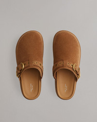 Set atop a substantial rubber platform, these suede slip-on shoes combine a rounded toe and stretch gores for comfortable, on-the-go ease.Fine-tune their fit by adjusting the grommet-studded buckled strap. Inside, you'll find dual-density antimicrobial foam insoles: OrthoLite® Lazy-Hybrid™ for custom-fit comfort, and OrthoLite® Recycled for stability and support. Size & Fit 28mm lightweight heel Features & Details Upper: 100% Cow leather Outsole: 100% Thermoplastic rubber Lining: 100% Calf leather Cleaning: Professional leather cleaner OrthoLite footbed Organic Cotton Standard certified Imported Product ID: WFF24HF1003SU03