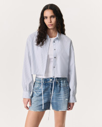 Reinventing the classics the rag & bone way. Our fresh take on the striped shirt is tailored for a relaxed, cropped fit from crisp cotton poplin. Play with its proportions by cinching the drawstrings at the hem to your liking. Size & Fit Relaxed fit cropped button down Size Small: Back length 18 7/8", chest 45 3/4", sweep 45 1/2", sleeve length 32 1/2" Model is 5'10" wearing size small Features & Details 100% Cotton Machine wash cold with like colors, delicate cycle, do not bleach, tumble dry low, cool iron Buttons at center front and cuffs, self drawcord at bottom hem, unlined Front button closure Imported Product ID: WAW25SA0317631