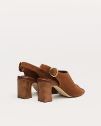 Designed with form and function in mind. Crafted from soft Italian-milled suede, these open-toe sandals feature an adjustable buckled slingback strap and are set on supportive stacked heels. Inside the leather-wrapped footbed, you'll find dual-density antimicrobial foam insoles: OrthoLite® Lazy-Hybrid™ for custom-fit comfort, and OrthoLite® Recycled for stability and support. Size & Fit 0.5" nubuck leather outsole 3"stacked leather wrapped heel and rubber toplift Features & Details Upper: 100% Cow Suede Outsole: 100% Nubuck Leather Lining: 100% Sheep Leather Professional Leather Cleaner Sheep leather upper, Ortholite footbed wrapped in sheep leather, nubuck leather outsole Leather Working Group (LWG) responsible leather Ortholite: Recycled sock foam Buckle closure Imported Italian suede Product ID: WFF25SF1008SU08