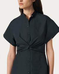 Unexpected details define this everyday mini dress tailored from crisp, lightweight cotton poplin. A gathered twist at the front gently sculpts its slim waist. The extended cap sleeves add dimension. Its band collar is finished with a domed metal button. All together, they make the shirting-inspired style one you'll reach for all season. Size & Fit • Slim fit dress • Fits true to size • Size 4: front length 36" | chest 37" | sweep 46" • Model is 5'11" wearing size 2 Features & Details • 100% cotton • Button front • Invisible zip with a book-and-eye closure at side seam • Metal dome button at collar, faux horn buttons at center front • Unlined • Machine wash warm & tumble dry medium • Imported Product ID: WAW25P30087608