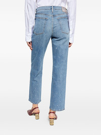 button-up denim jeans Highlights - Light blue - Embellishment - Silver-tone hardware - Belt loops - Five pockets - Button fastening Imported Composition Cotton 99%, Elastane 1% Washing instructions Read Manufacturer Guidelines